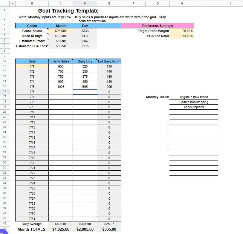 FREE Monthly Goal Tracking Template for Amazon Sellers