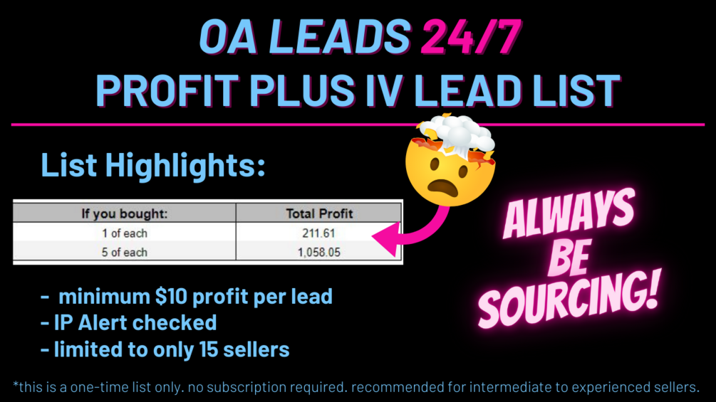 You'll get immediate access to this Profit Plus Lead List with 10 premium Amazon leads!